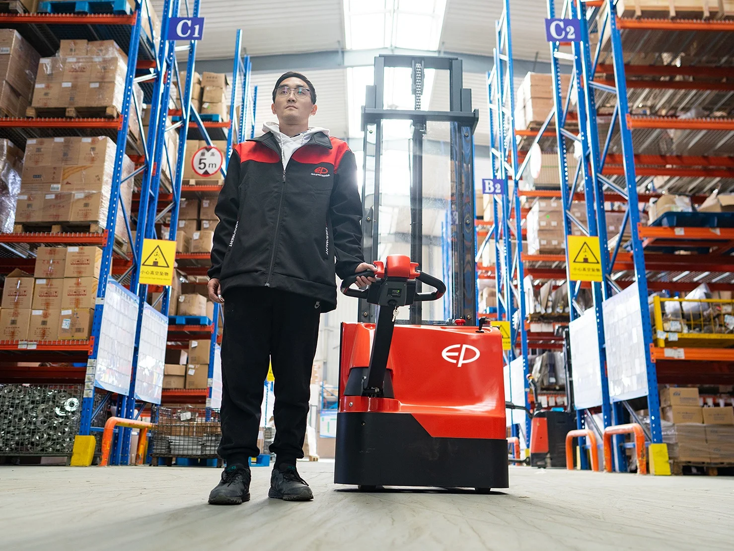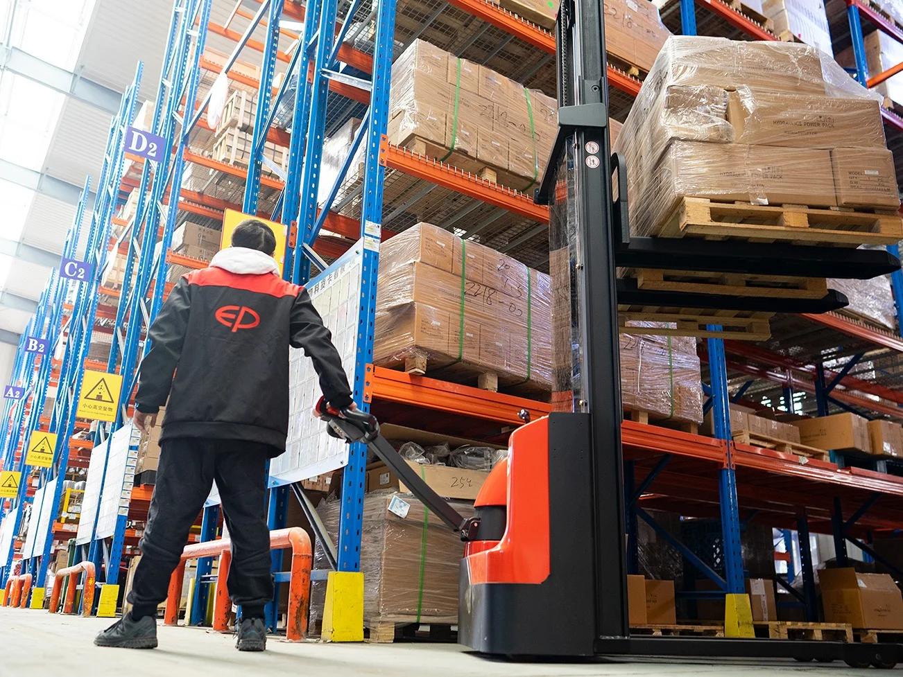 Lưu trữ theo chiều dọc: Với chiều cao nâng lên tới 3600mm, xe xếp pallet này hoàn hảo cho việc lưu trữ và xếp chồng theo chiều dọc.